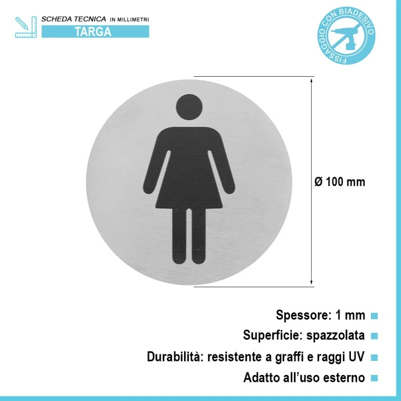 Targhetta wc donne in alluminio spazzolato fissaggio con biadesivo