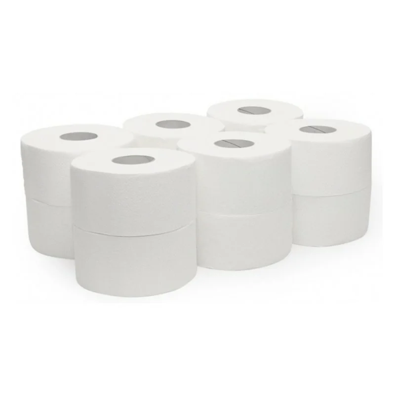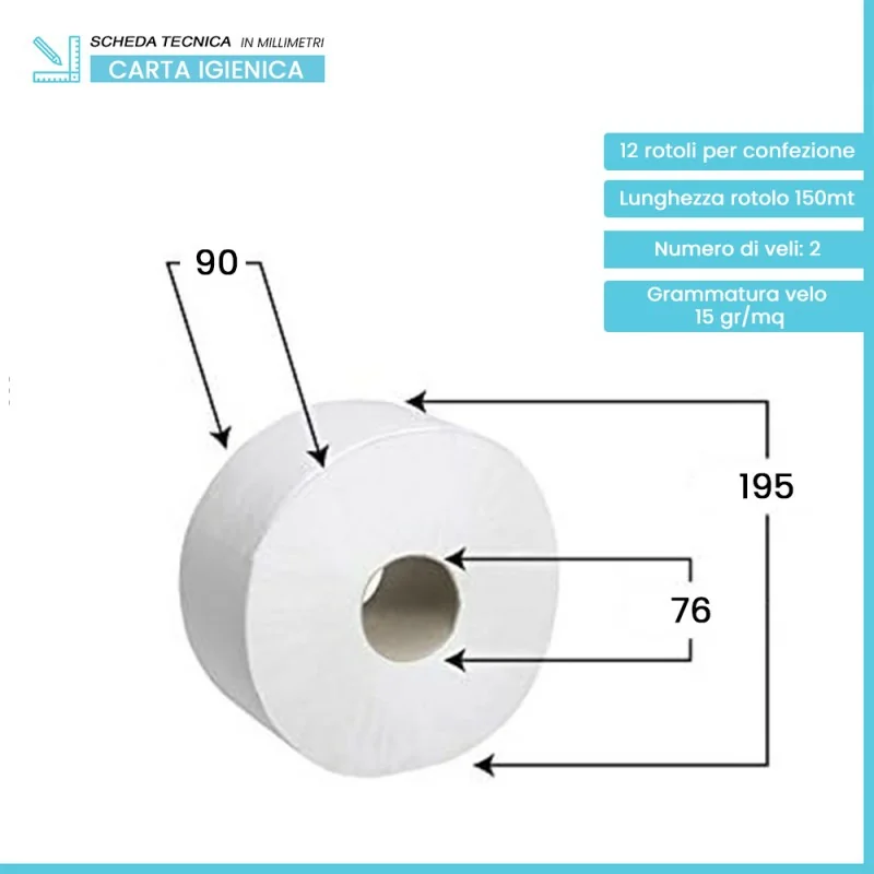 Confezione da 12 rotoli di carta igienica industriale con lunghezza di ciascun rotolo di 150mt