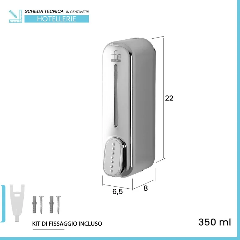 Dispenser sapone liquido a muro cromo da 350 ml con fissaggi inclusi Dosatore sapone liquido a muro cromo da 350 ml con fissaggi inclusi Erogatore sapone liquido a muro cromo da 350 ml con fissaggi inclusi Scheda tecnica Dispenser sapone liquido a muro cromo da 350 ml con fissaggi inclusi Erogazione Dispenser sapone liquido a muro cromo da 350 ml con fissaggi inclusi