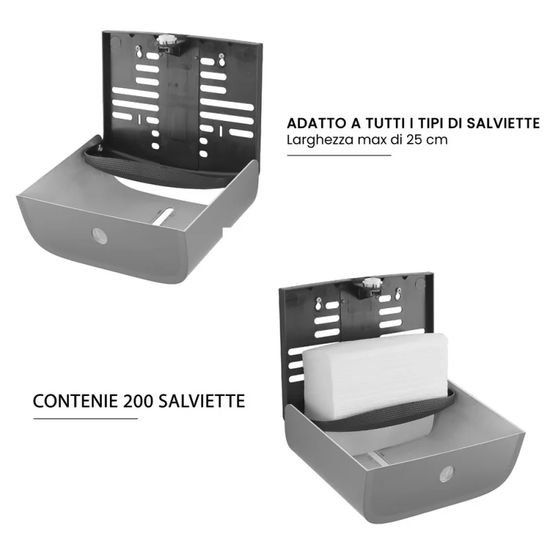 • Compatibile con qualsiasi salvietta piegata a Z,V,C ecc. fino a 25 cm di larghezza;