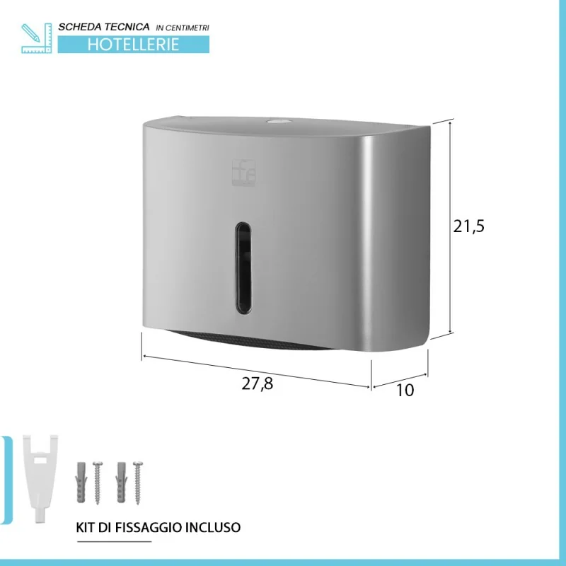 Erogatore di salviette contenente 200 fogli di carta piegata a Z,V,C con apertura mediante chiavetta   Ideale per bagni pubblici, ristoranti,...