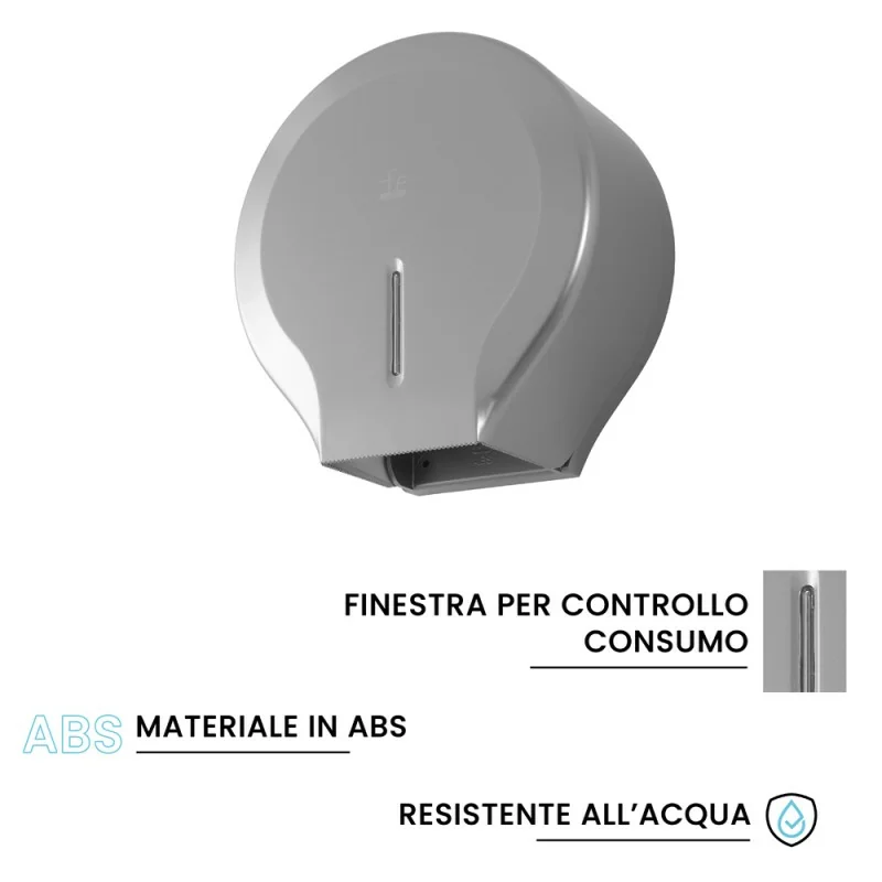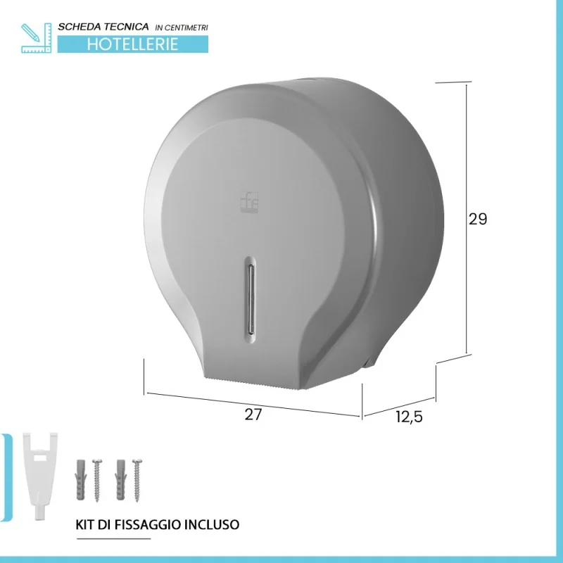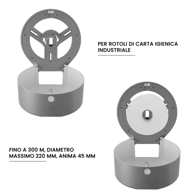 Distributore di carta igienica a rotoli fino a 300 mt in ABS grigio