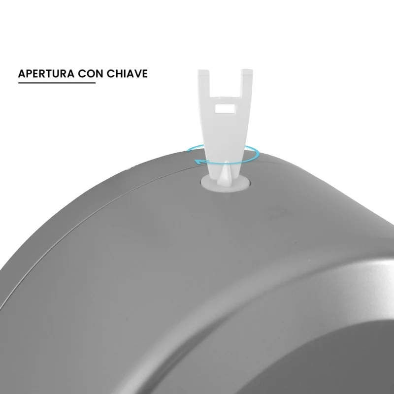 Erogatore di carta igienica industriale a rotoli per un massimo di 300 metri con apertura mediante chiavetta