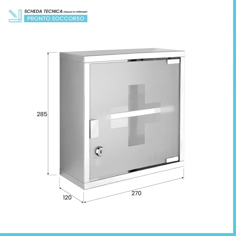 Armadietto farmacia da parete in acciaio inox con serratura e chiave