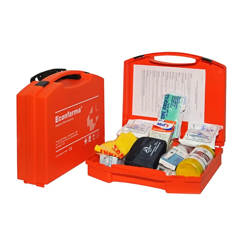 La sicurezza non è un'opzione, ma una necessità assoluta. Questa cassetta di pronto soccorso completa è un oggetto molto utile ed essenziale per garantire la protezione di tutti. Il suo kit risponde pienamente ai requisiti previsti dall'allegato 2 del DM. 388/03 per aziende di gruppo C, rendendola la scelta ideale per uffici, studi professionali e attività commerciali. Realizzata in polipropilene di colore arancione, è facile da identificare e dotata di maniglia per il trasporto e di supporto murale per la massima flessibilità. La pratica chiusura con clip assicura che il contenuto rimanga sempre protetto e in ordine. Scegli la nostra cassetta per avere sempre a disposizione un kit affidabile e completo, garantendo un ambiente di lavoro sicuro e conforme alla legge