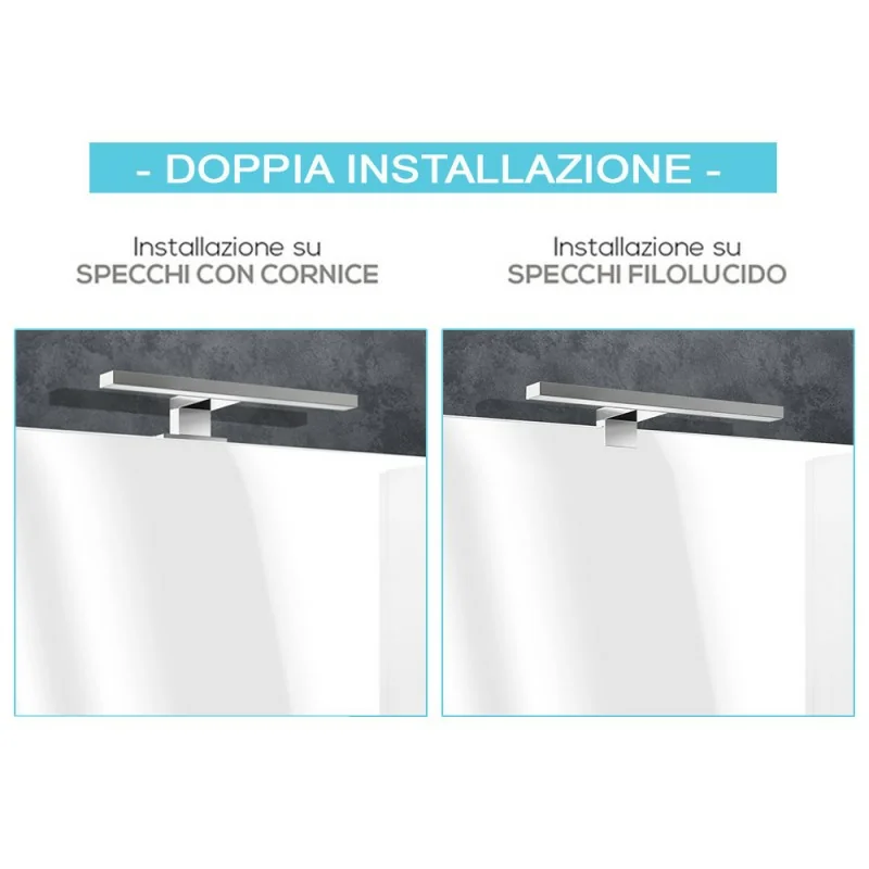 Lampada LED per specchio 30 cm luce fredda e doppia installazione