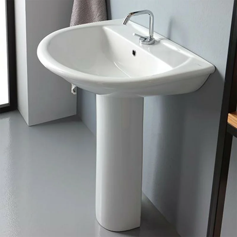 Lavabo con colonna 65 x 51 x 85 cm in ceramica bianca