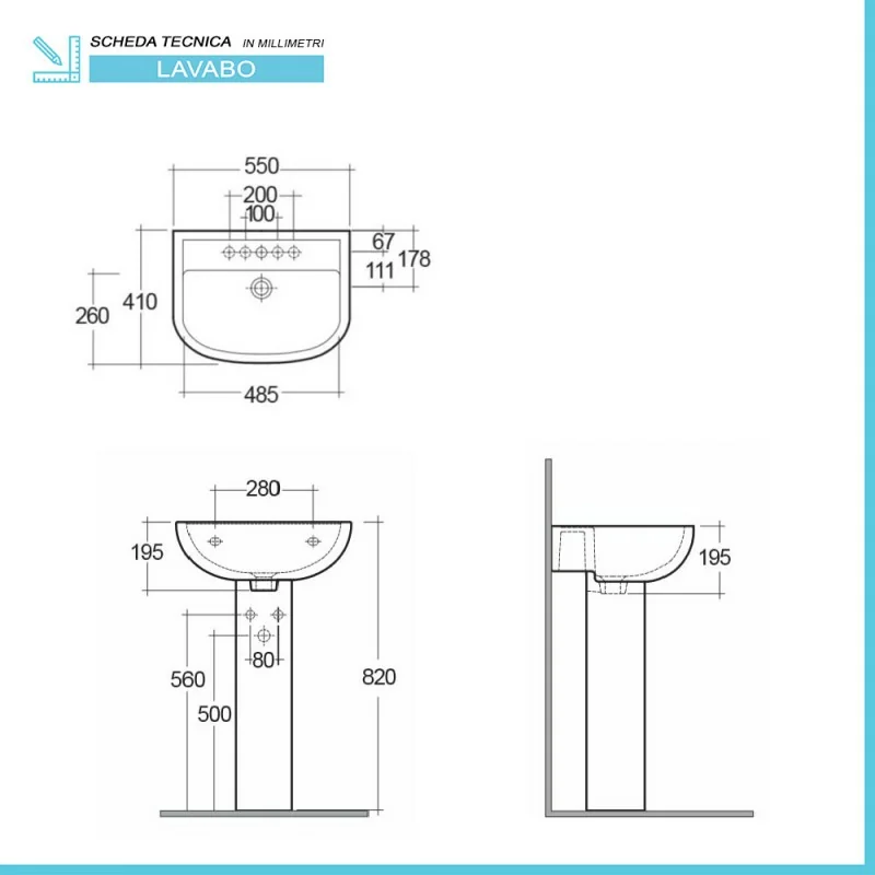 Il lavabo con colonna dona armonia ed elegantezza al proprio arredo bagno,offrendogli un complemento pressochè indispensabile per la cura dell'igiene e il risciacquo dei propri oggetti. Il lavandino con colonna è provvisto sia del troppo pieno che del foro rubinetteria,compatibile con miscelatore monocomando e una batteria a 3 fori.