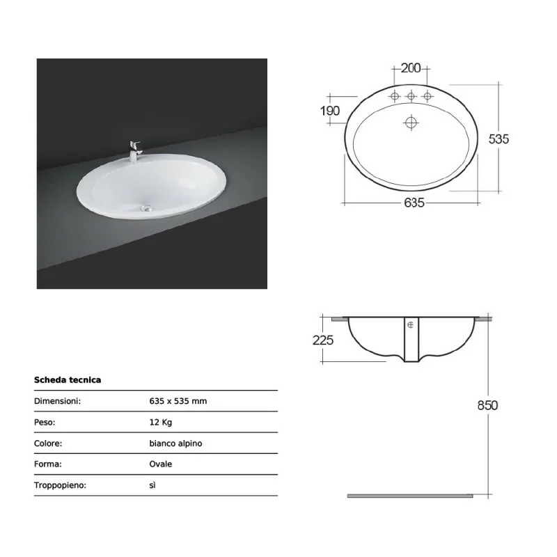 Lavabo da incasso soprapiano caratteristiche tecniche: