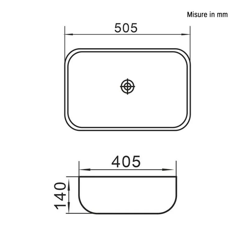 • Forma rettangolare con angoli tondi,SENZA foro troppo pieno;