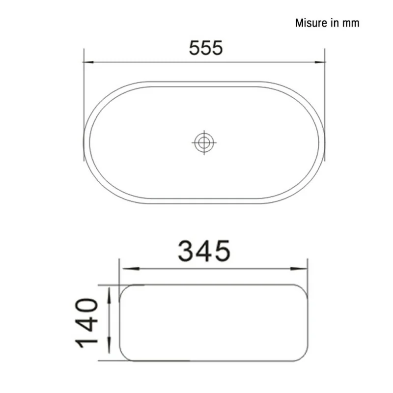 Lavabo ovale in appoggio su top o mobile bagno,in ceramica lucida con profondità 12,5 cm