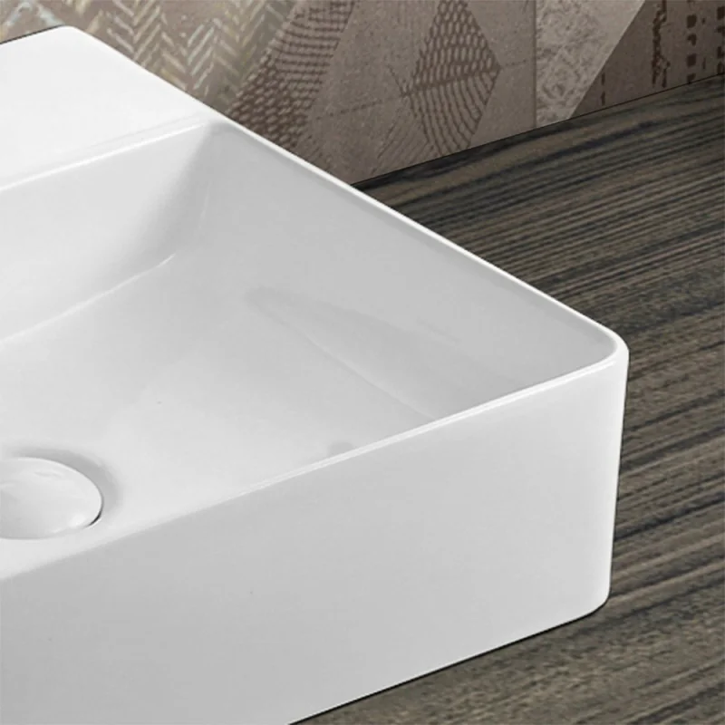 Lavabo rettangolare in appoggio su top o mobile bagno, in ceramica bianca con profondità del pozzetto 8 cm