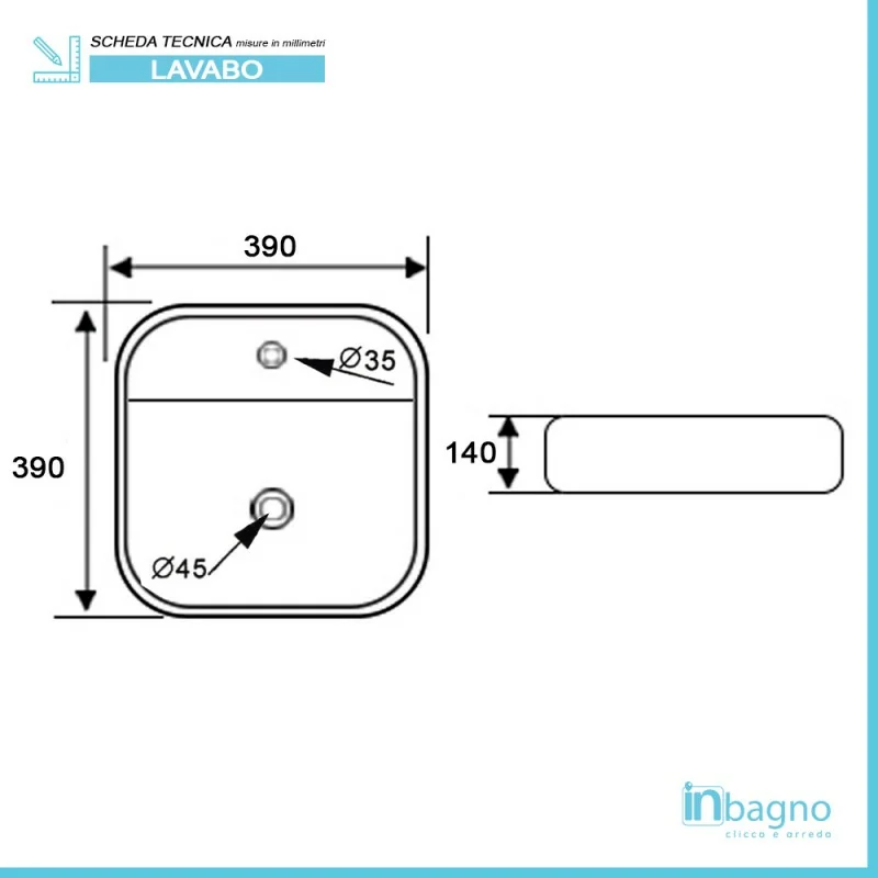 Lavandino da appoggio 39x39 cm caratteristiche tecniche: