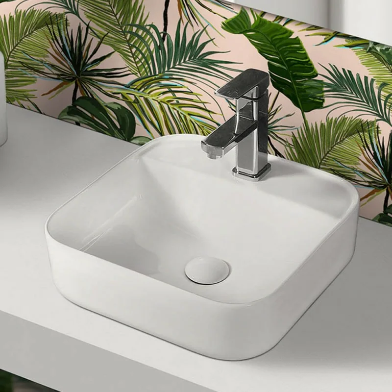Lavandino da appoggio 39x39 cm in ceramica lucida con angoli tondi
