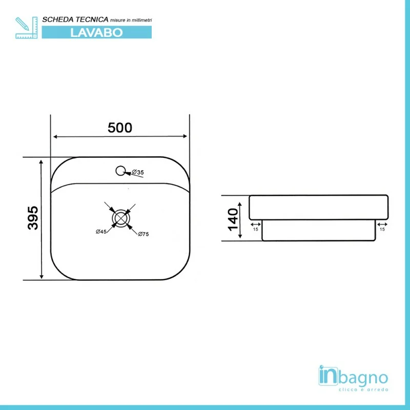 Lavandino da appoggio 50x39 cm caratteristiche tecniche: