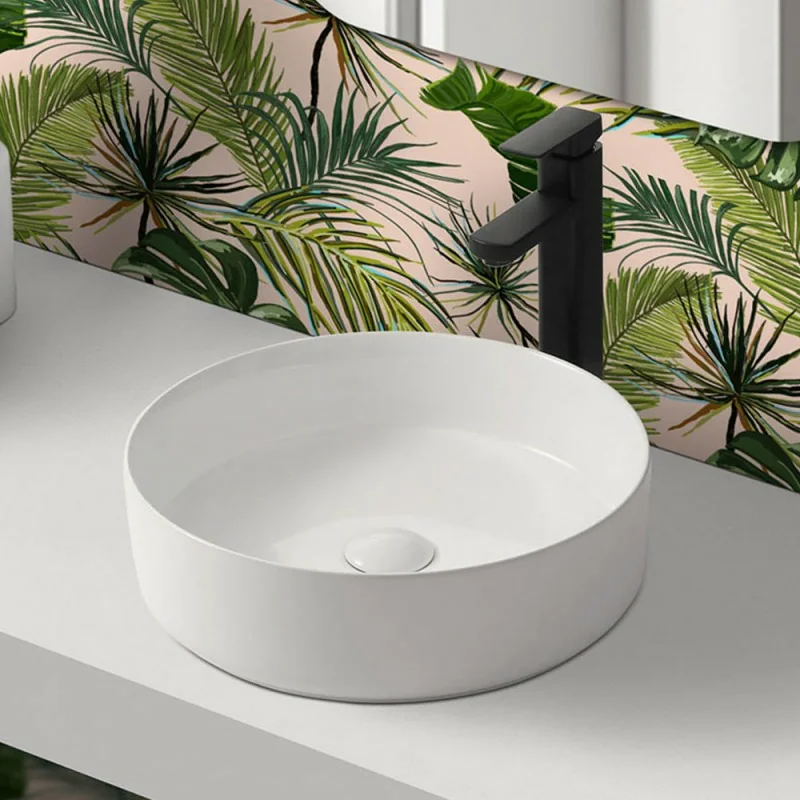 Lavandino da appoggio D. 40 cm design tondo in ceramica bianca lucida