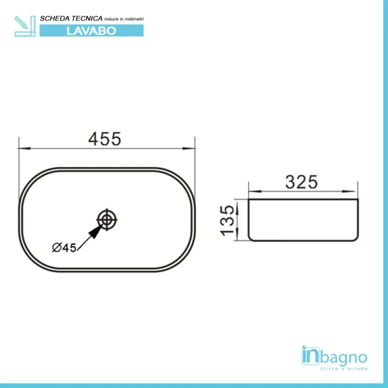 Lavabo da appoggio 45x32 caratteristiche tecniche: