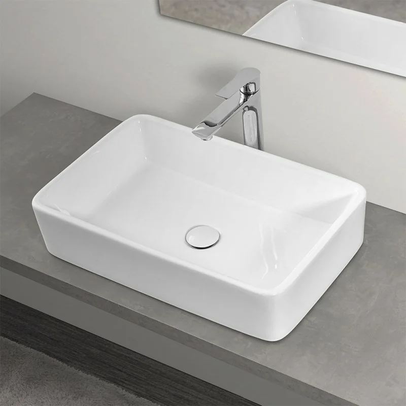 Lavabo rettangolare in appoggio su top o mobile bagno,in ceramica lucida con profondità 13 cm