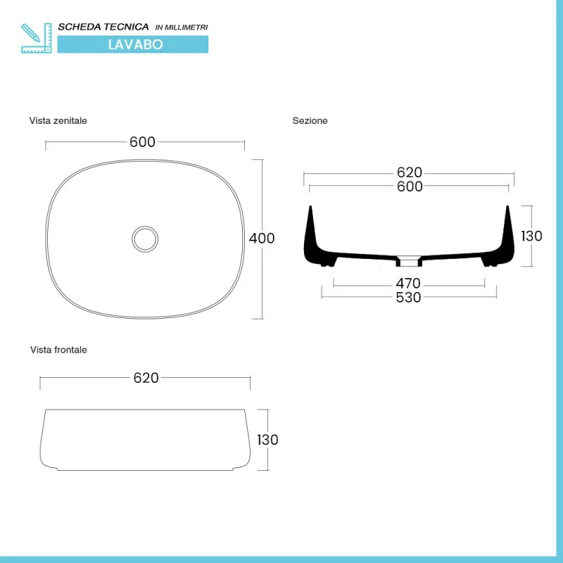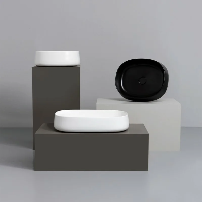 Lavabo bagno con angoli stondati da installare in appoggio su mensola,top o mobile bagno