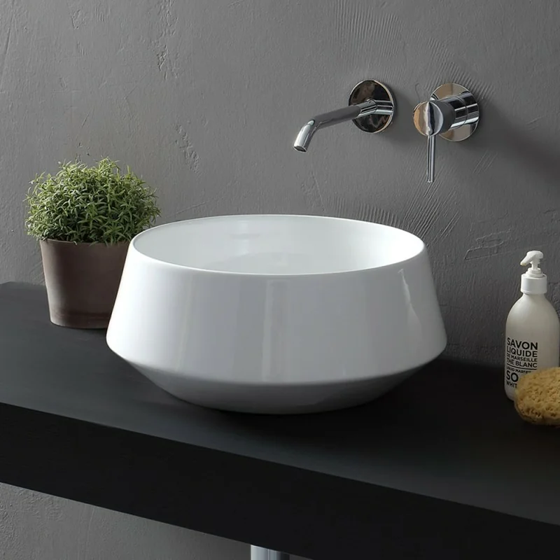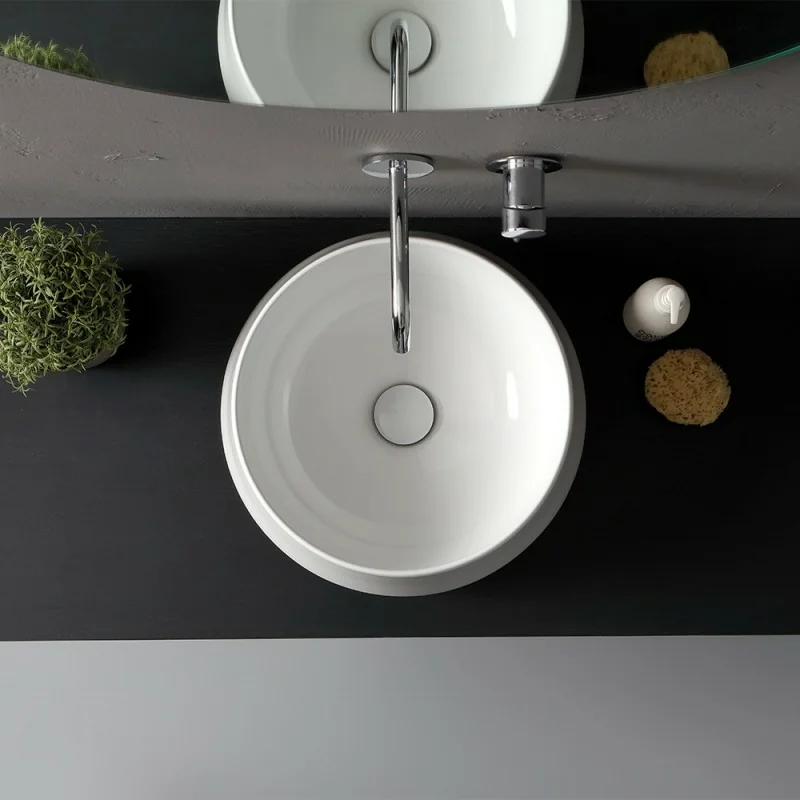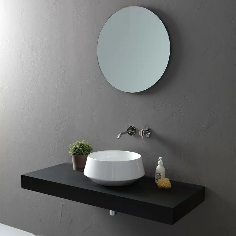 Lavabo bagno con forma tonda da installare in appoggio su mensola,top o mobile bagno