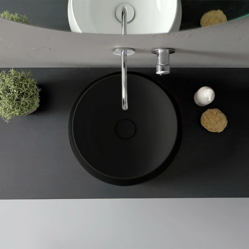 Lavabo da appoggio in ceramica nero opaco tondo 42 cm Aris