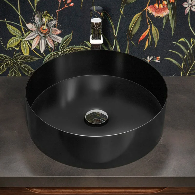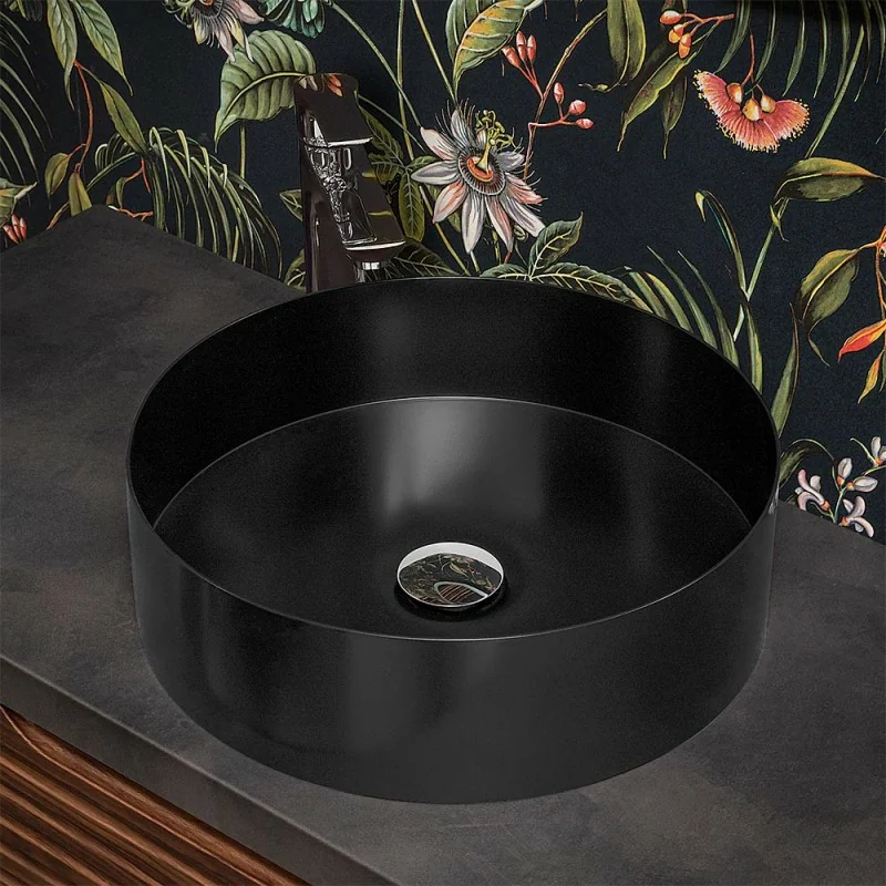Lavabo da appoggio tondo 40 cm in acciaio inox nero opaco | Goya