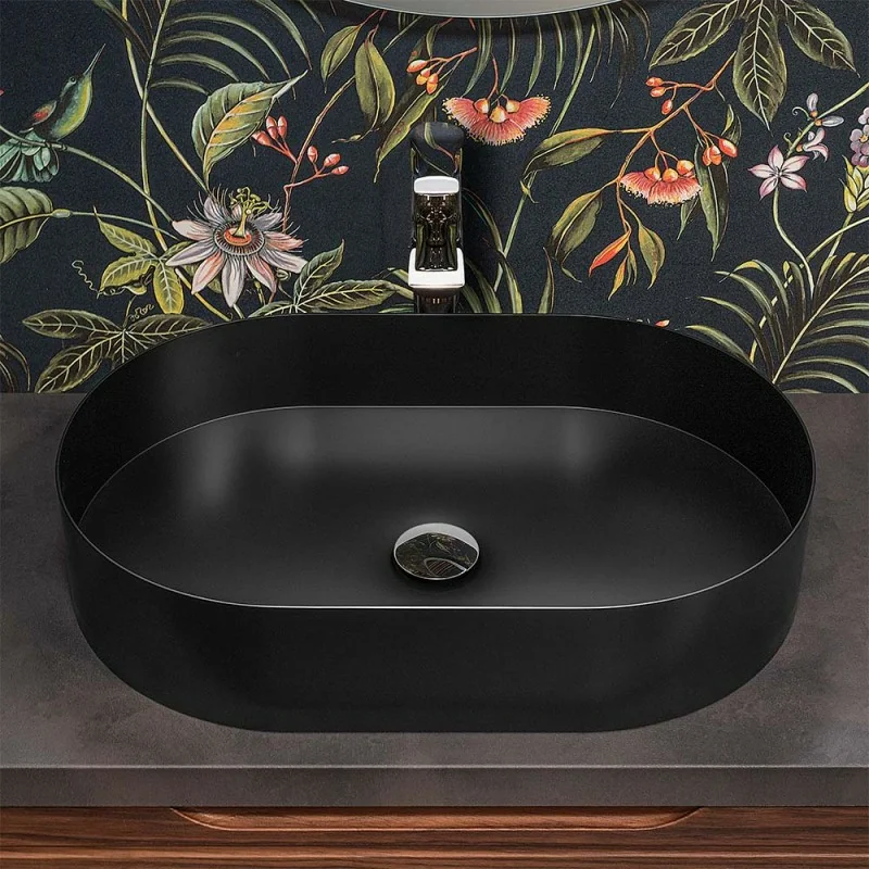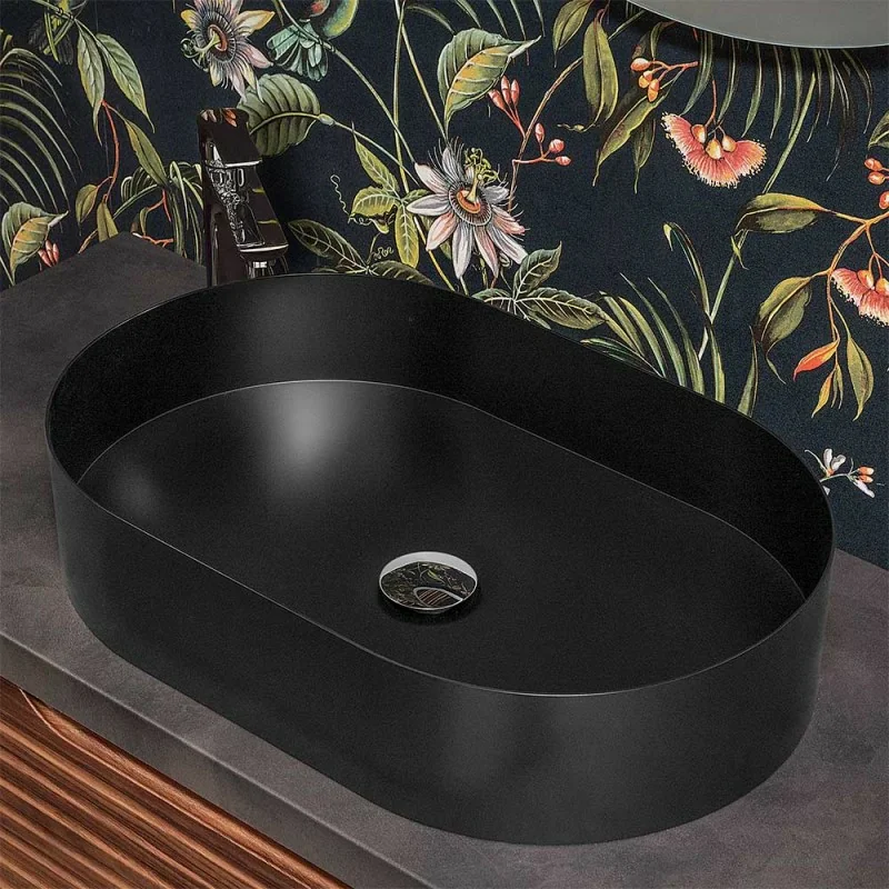 Lavabo da appoggio ovale 58x38 cm in acciaio inox nero opaco | Goya