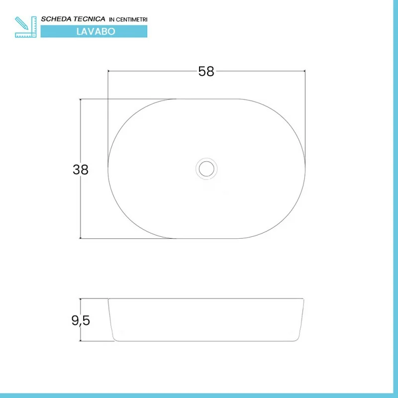 • Dimensioni:L 58 x p 38 cm,profondità pozzetto 9,5 cm;