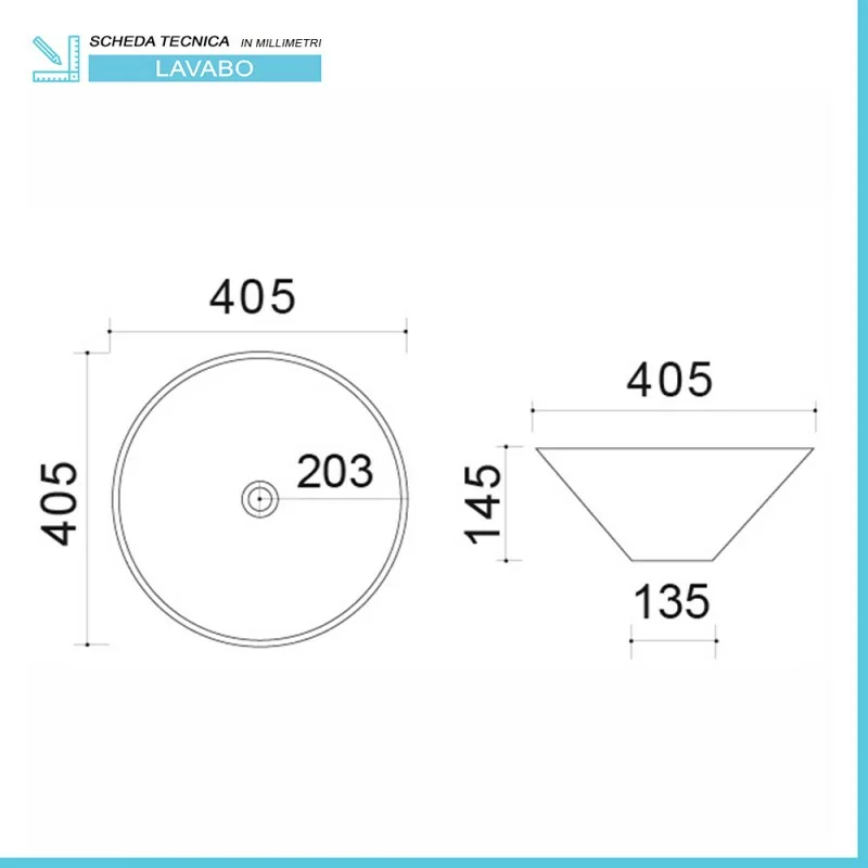 Il lavabo è realizzato integralmente in ceramica lucida,materiale più utilizzato nella produzione di sanitari,con finitura bianco lucido:la sua ampia capienza è racchiusa in un diametro di 40,5 cm e una profondità di 14,5 cm. Disponibile in diverse misure e in differenti finiture.