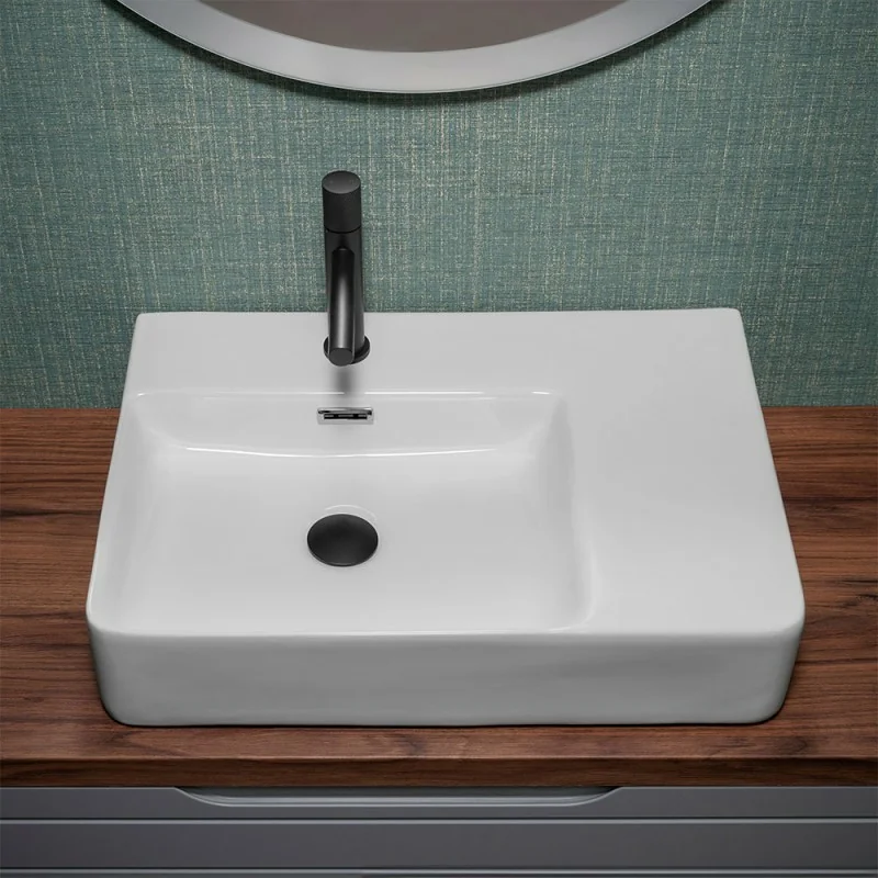 Lavabo da appoggio 60x43 con vasca a sinistra in ceramica lucida