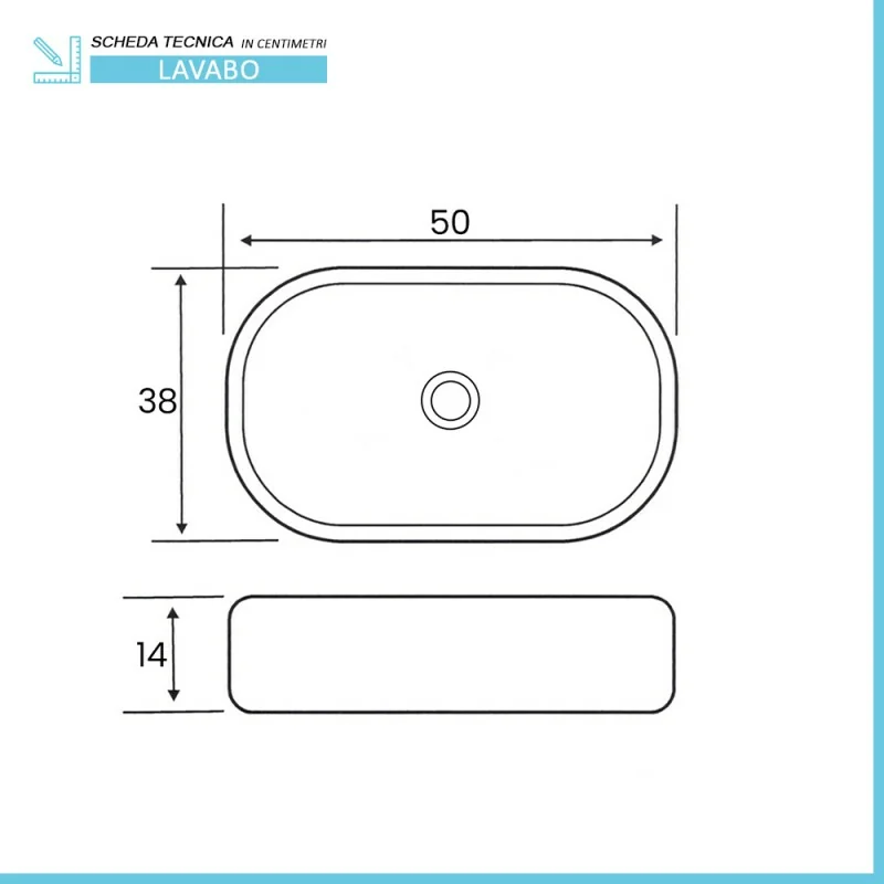Lavamani da appoggio 50x38 cm Tokyo caratteristiche tecniche: