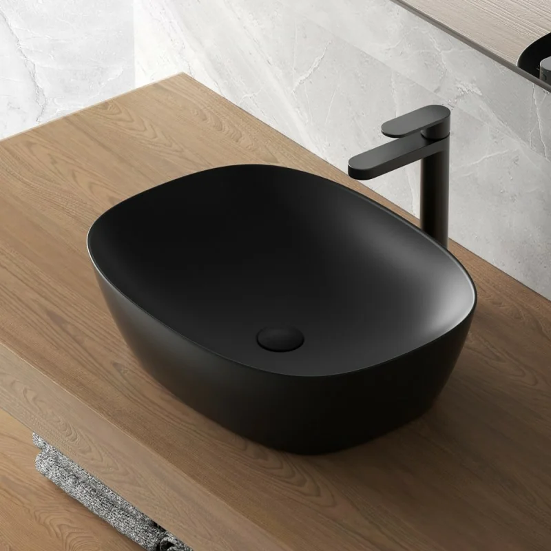 Lavabo da appoggio ovale da 50x38 cm in ceramica nero opaco linea Tokyo