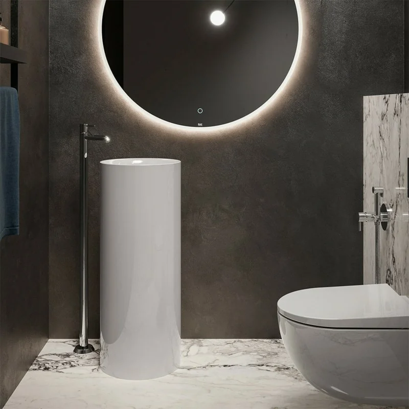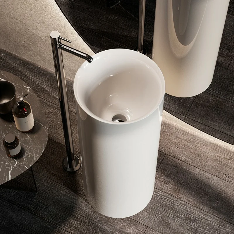Lavabo freestanding da terra - design tondo cilindrico H 90 cm bianco in ceramica