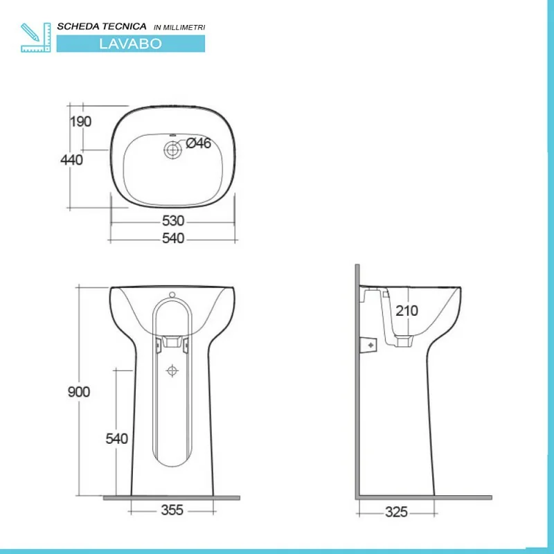 Lavabo freestanding - H 90 cm in ceramica bianca serie Illusion di Rak