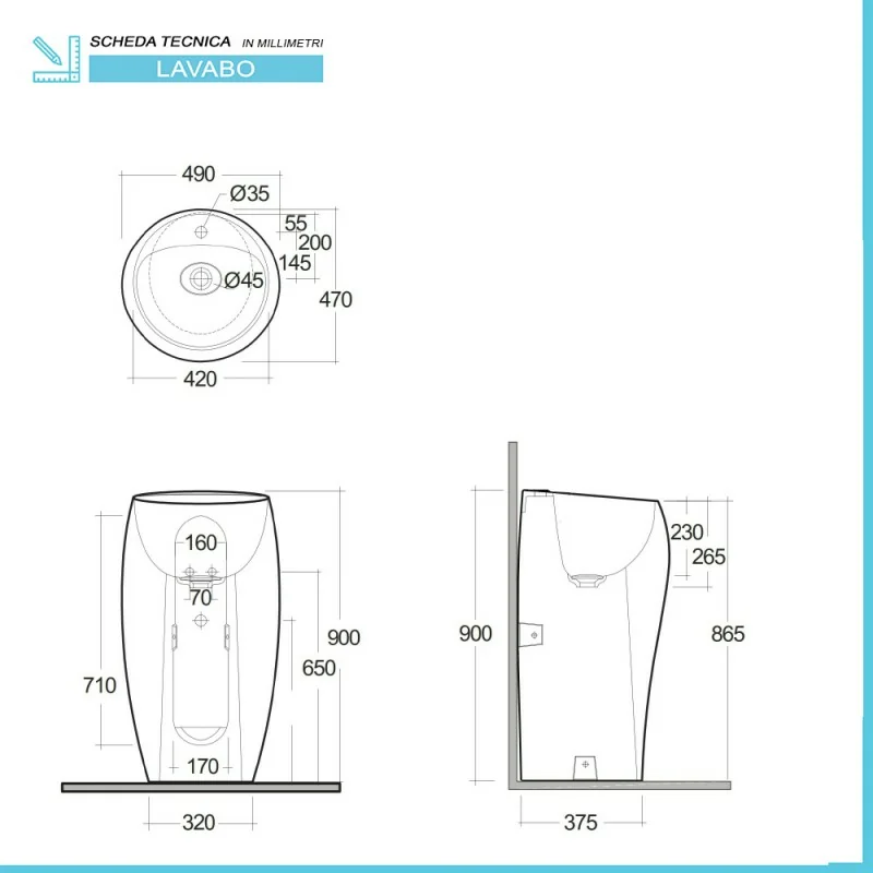 Lavabo da terra - modello Cloud ad installazione libera bianco alpino in ceramica