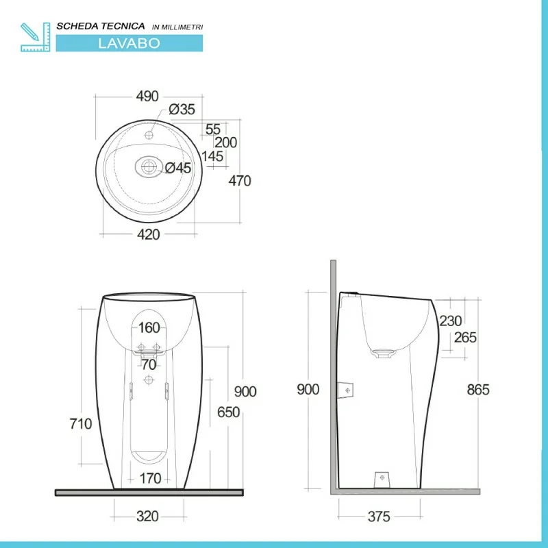 Lavabo da terra - modello Cloud ad installazione libera bianco opaco in ceramica