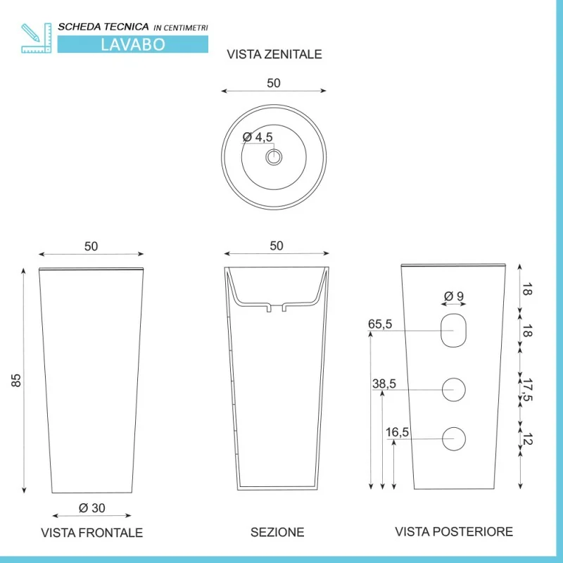 • Dimensioni:L 50 x P 50 x H 85 cm;