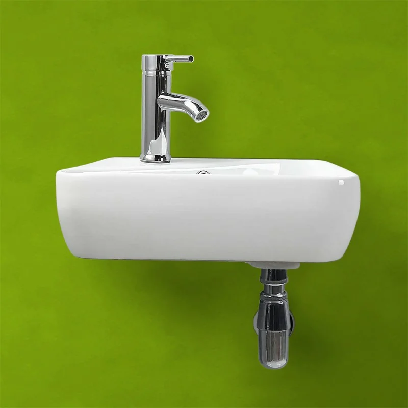 Lavabo Sospeso in Ceramica 45 x 27,5 cm Bianco Lucido Salvaspazio Lavandino sospeso in ceramica bianco lucido salvaspazio
