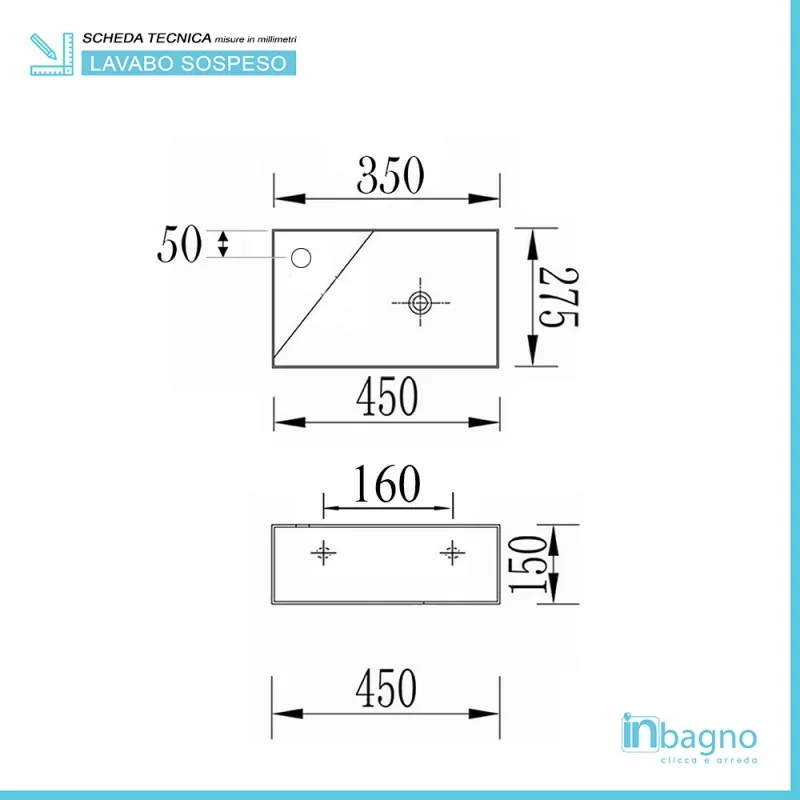 • Tipologia:lavabo bagno sospeso design vasca a dx