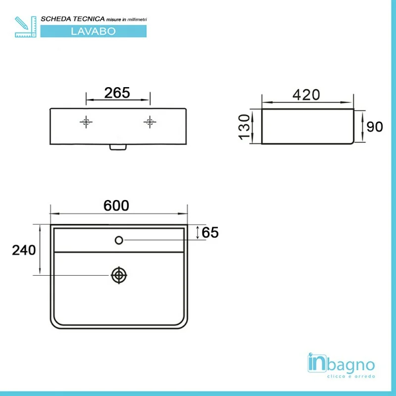 Lavabo sospeso 60x42 cm rettangolare in ceramica bianco lucido   Il lavabo sospeso è un complemento molto rinomato nel settore dell' arredo...