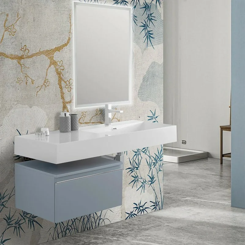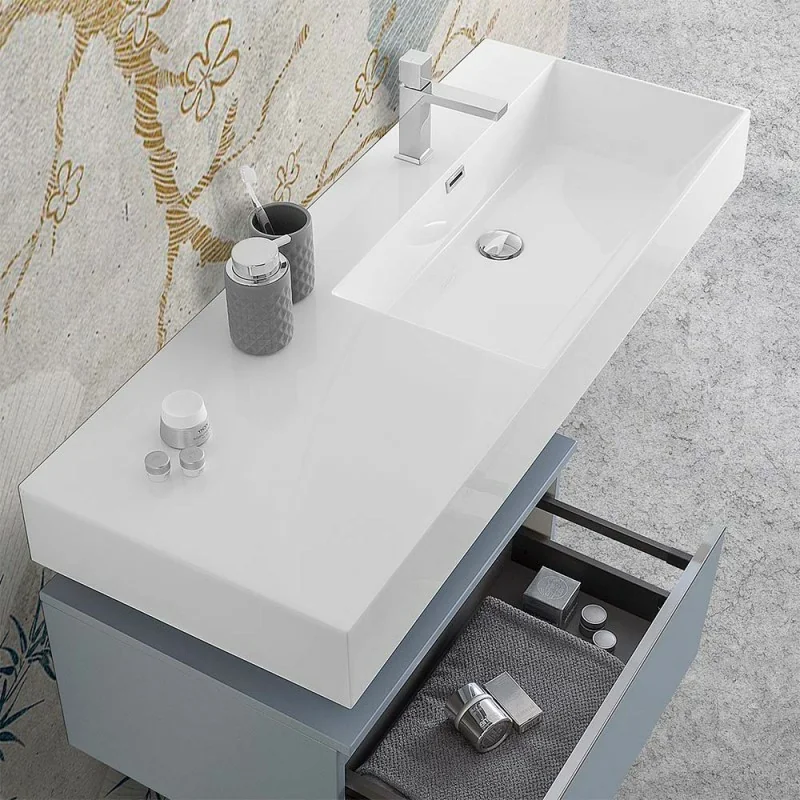 Lavabo sospeso in resina 120 cm vasca destra bianco lucido  Loto