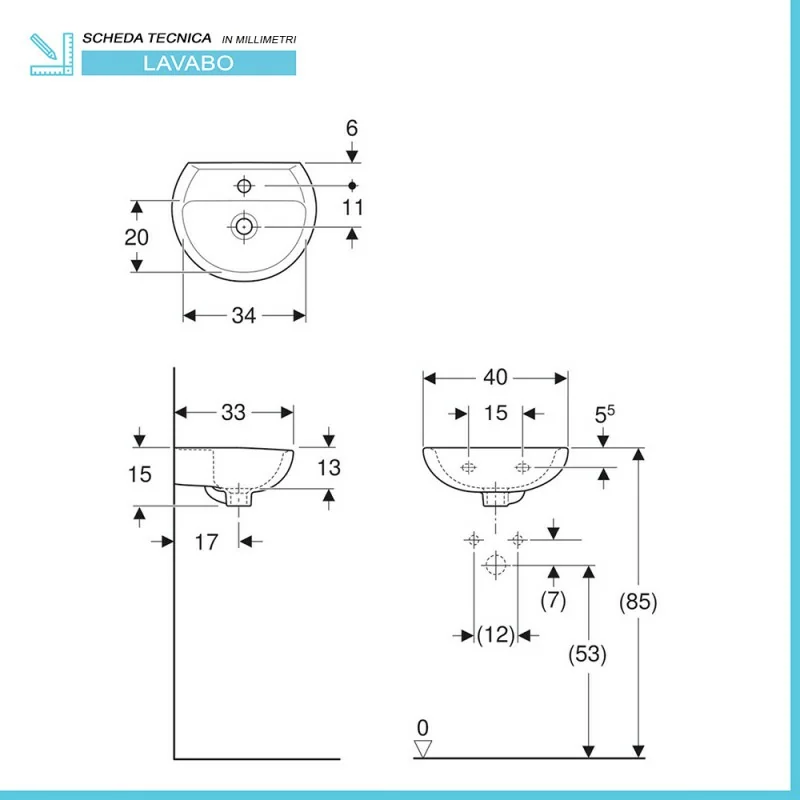 Lavabo sospeso 40 cm Geberit in ceramica lucida  Colibrì