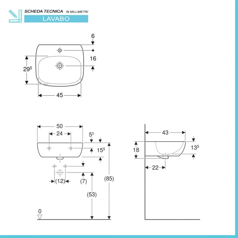 Lavabo sospeso – riepilogo caratteristiche: