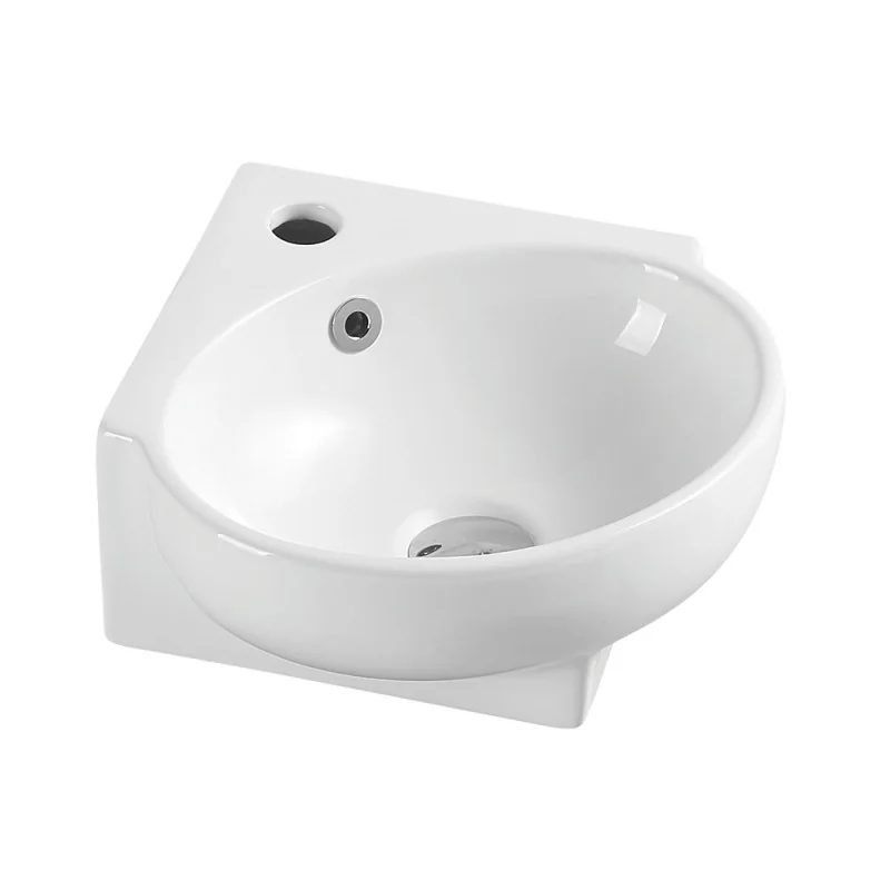 Lavabo sospeso ad angolo 39x36 in ceramica lucida con design ovale