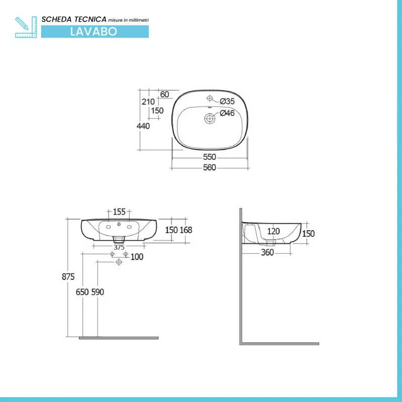 Lavabo ovale caratteristiche tecniche: