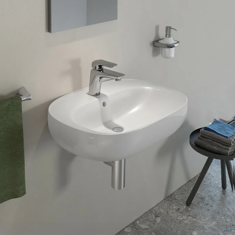 Lavabo ovale 60 cm sospeso bianco in porcellana monoforo Rak Illusion