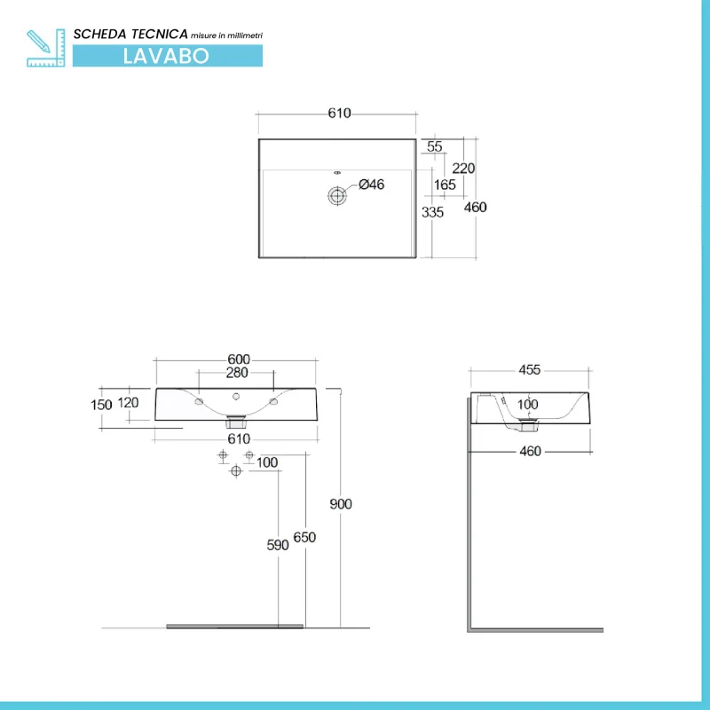 • Tipologia: lavabo sospeso;