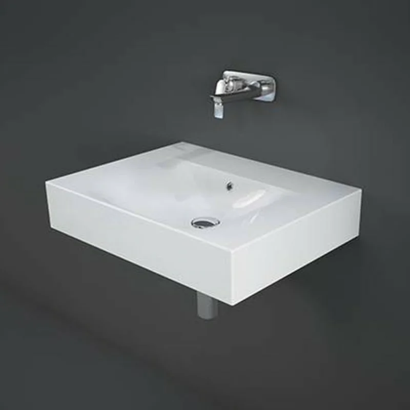 Lavandino sospeso 60cm rettangolare in ceramica bianca senza foro per rubinetto di Rak linea Des