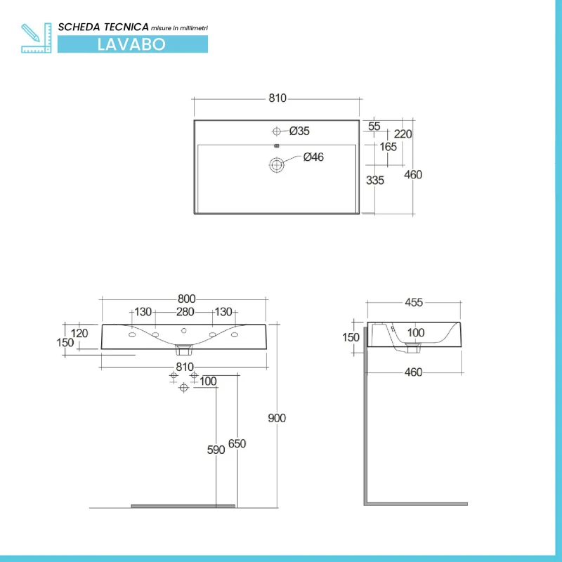 • Tipologia: lavabo sospeso;