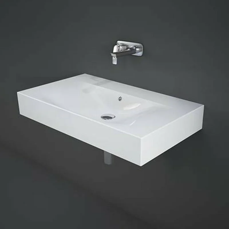 Lavandino sospeso 80cm rettangolare in ceramica bianca senza foro per rubinetto di Rak linea Des